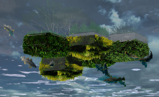 Πάνω στα βάθρα αναπτύχθηκε ένα πράσινο περιβάλλον με την καλλιέργεια μιας ποικιλίας φυτών που περιλαμβάνει από βρύα μέχρι δέντρα λίγων μέτρων. Τα βάθρα αυτά, που μέρος τους είναι κάτω από το νερό, δημιουργούν ένα τοπίο που αναβαθμίζει το οικοσύστημα του ποταμού, όπως φαίνεται και στις παρακάτω τρισδιάστατες απεικονίσεις της οργάνωσης Recycled Island Foundation.